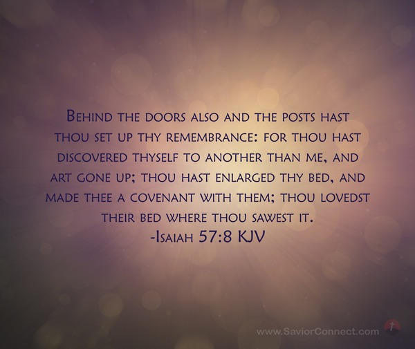 Behind the doors also and the posts hast thou set up thy remembrance: for thou hast discovered thyself to another than me, and art gone up; thou hast enlarged thy bed, and made thee a covenant with them; thou lovedst their bed where thou sawest it. -Isaiah 57:8 KJV