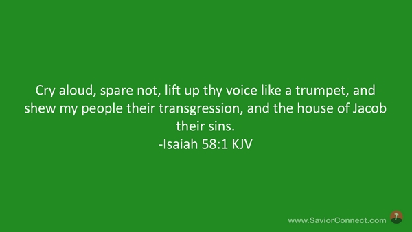 Cry aloud, spare not, lift up thy voice like a trumpet, and shew my people their transgression, and the house of Jacob their sins. -Isaiah 58:1 KJV