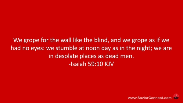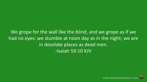 We grope for the wall like the blind, and we grope as if we had no eyes: we stumble at noon day as in the night; we are in desolate places as dead men. -Isaiah 59:10 KJV