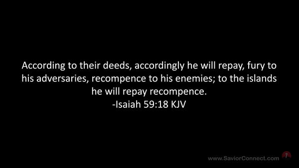 According to their deeds, accordingly he will repay, fury to his adversaries, recompence to his enemies; to the islands he will repay recompence. -Isaiah 59:18 KJV