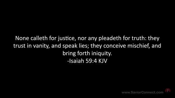 None calleth for justice, nor any pleadeth for truth: they trust in vanity, and speak lies; they conceive mischief, and bring forth iniquity. -Isaiah 59:4 KJV