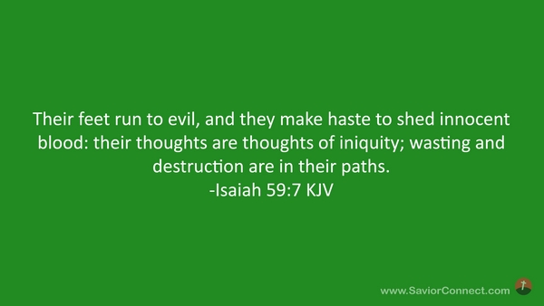 Their feet run to evil, and they make haste to shed innocent blood: their thoughts are thoughts of iniquity; wasting and destruction are in their paths. -Isaiah 59:7 KJV