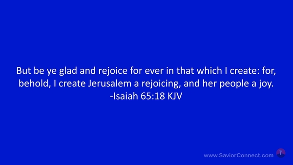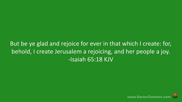 But be ye glad and rejoice for ever in that which I create: for, behold, I create Jerusalem a rejoicing, and her people a joy. -Isaiah 65:18 KJV