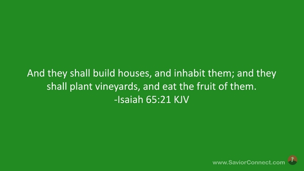 And they shall build houses, and inhabit them; and they shall plant vineyards, and eat the fruit of them. -Isaiah 65:21 KJV