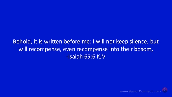 Behold, it is written before me: I will not keep silence, but will recompense, even recompense into their bosom, -Isaiah 65:6 KJV