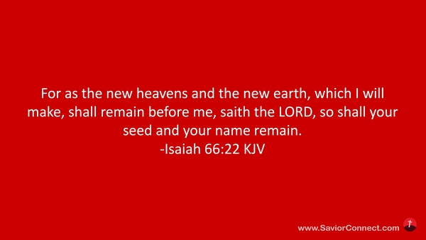 For as the new heavens and the new earth, which I will make, shall remain before me, saith the LORD, so shall your seed and your name remain. -Isaiah 66:22 KJV