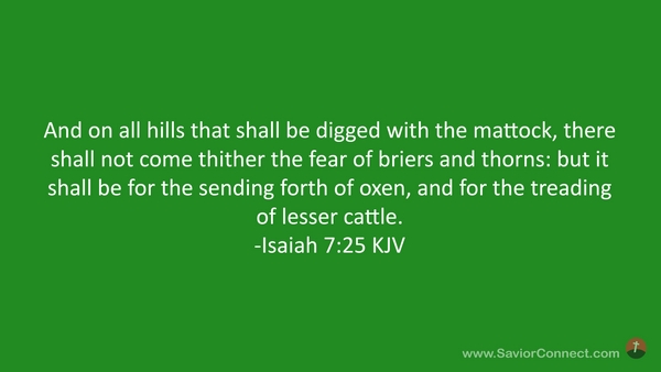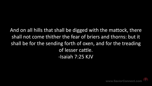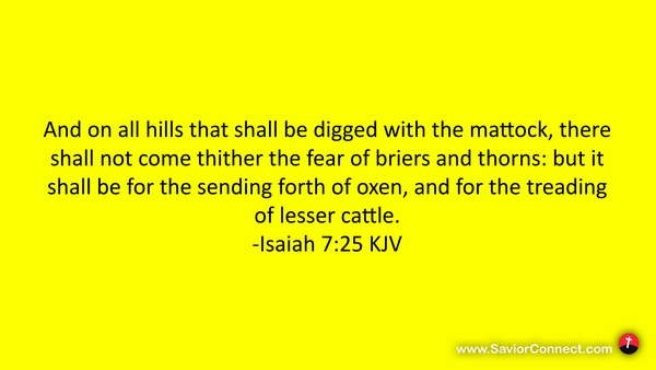 And on all hills that shall be digged with the mattock, there shall not come thither the fear of briers and thorns: but it shall be for the sending forth of oxen, and for the treading of lesser cattle. -Isaiah 7:25 KJV