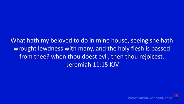 What hath my beloved to do in mine house, seeing she hath wrought lewdness with many, and the holy flesh is passed from thee? when thou doest evil, then thou rejoicest. -Jeremiah 11:15 KJV