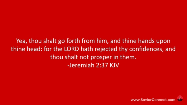 Yea, thou shalt go forth from him, and thine hands upon thine head: for the LORD hath rejected thy confidences, and thou shalt not prosper in them. -Jeremiah 2:37 KJV