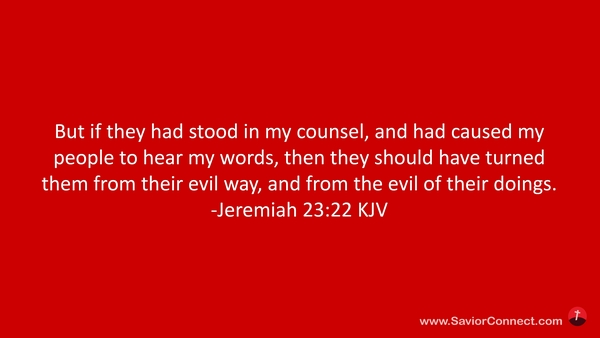 But if they had stood in my counsel, and had caused my people to hear my words, then they should have turned them from their evil way, and from the evil of their doings. -Jeremiah 23:22 KJV