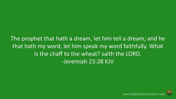 The prophet that hath a dream, let him tell a dream; and he that hath my word, let him speak my word faithfully. What is the chaff to the wheat? saith the LORD. -Jeremiah 23:28 KJV