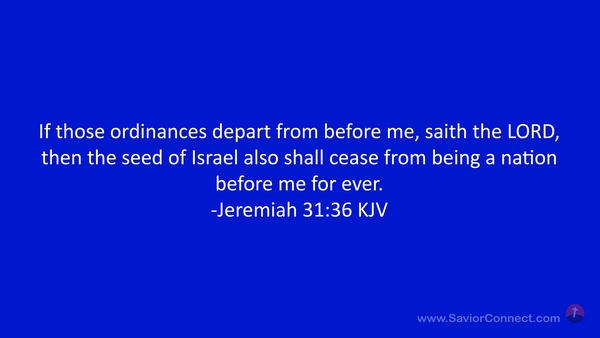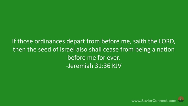 If those ordinances depart from before me, saith the LORD, then the seed of Israel also shall cease from being a nation before me for ever. -Jeremiah 31:36 KJV