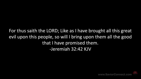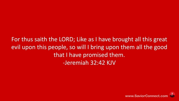 For thus saith the LORD; Like as I have brought all this great evil upon this people, so will I bring upon them all the good that I have promised them. -Jeremiah 32:42 KJV
