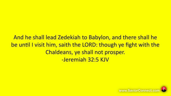 And he shall lead Zedekiah to Babylon, and there shall he be until I visit him, saith the LORD: though ye fight with the Chaldeans, ye shall not prosper. -Jeremiah 32:5 KJV