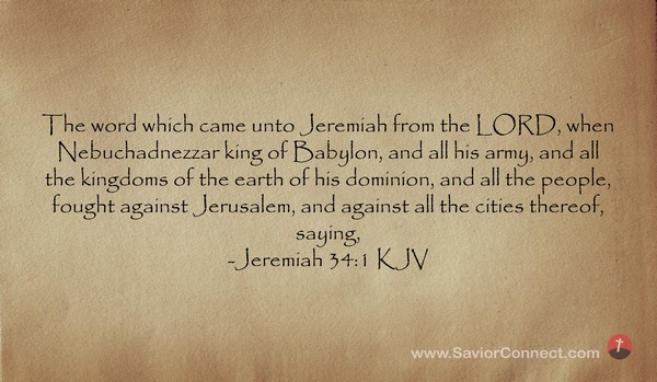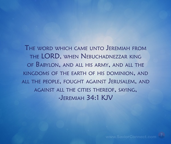 The word which came unto Jeremiah from the LORD, when Nebuchadnezzar king of Babylon, and all his army, and all the kingdoms of the earth of his dominion, and all the people, fought against Jerusalem, and against all the cities thereof, saying, -Jeremiah 34:1 KJV