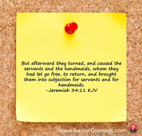 But afterward they turned, and caused the servants and the handmaids, whom they had let go free, to return, and brought them into subjection for servants and for handmaids. -Jeremiah 34:11 KJV