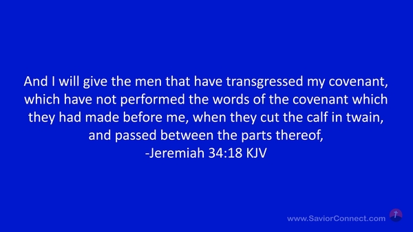 And I will give the men that have transgressed my covenant, which have not performed the words of the covenant which they had made before me, when they cut the calf in twain, and passed between the parts thereof, -Jeremiah 34:18 KJV