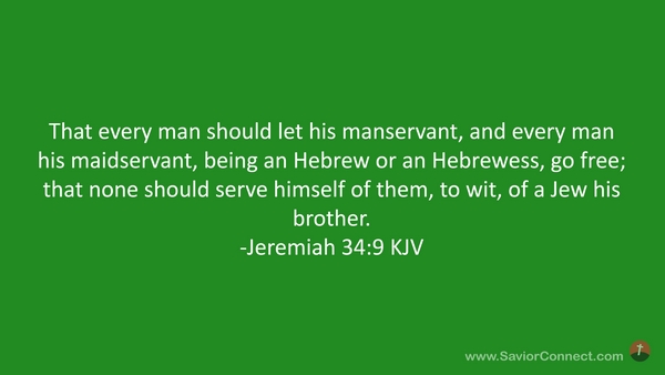 That every man should let his manservant, and every man his maidservant, being an Hebrew or an Hebrewess, go free; that none should serve himself of them, to wit, of a Jew his brother. -Jeremiah 34:9 KJV