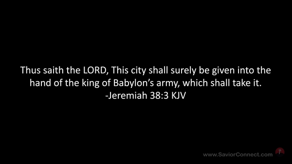 Thus saith the LORD, This city shall surely be given into the hand of the king of Babylon's army, which shall take it. -Jeremiah 38:3 KJV