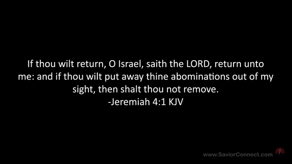 If thou wilt return, O Israel, saith the LORD, return unto me: and if thou wilt put away thine abominations out of my sight, then shalt thou not remove. -Jeremiah 4:1 KJV