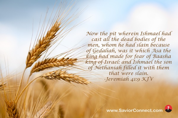 Now the pit wherein Ishmael had cast all the dead bodies of the men, whom he had slain because of Gedaliah, was it which Asa the king had made for fear of Baasha king of Israel: and Ishmael the son of Nethaniah filled it with them that were slain. -Jeremiah 41:9 KJV