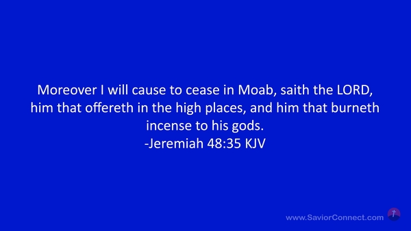 Moreover I will cause to cease in Moab, saith the LORD, him that offereth in the high places, and him that burneth incense to his gods. -Jeremiah 48:35 KJV