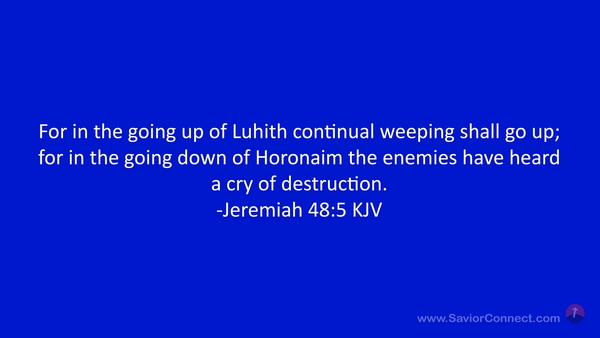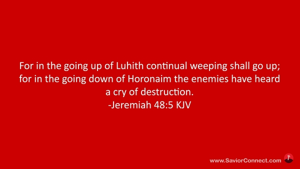 For in the going up of Luhith continual weeping shall go up; for in the going down of Horonaim the enemies have heard a cry of destruction. -Jeremiah 48:5 KJV
