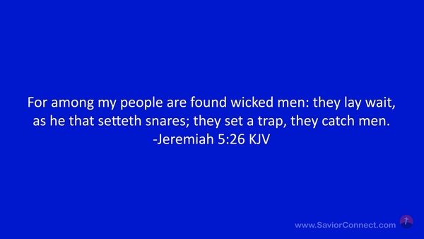 For among my people are found wicked men: they lay wait, as he that setteth snares; they set a trap, they catch men. -Jeremiah 5:26 KJV
