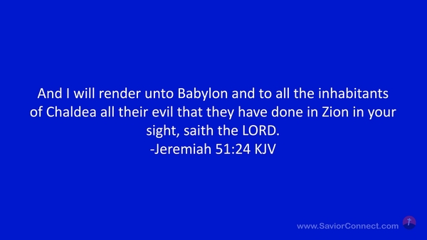 And I will render unto Babylon and to all the inhabitants of Chaldea all their evil that they have done in Zion in your sight, saith the LORD. -Jeremiah 51:24 KJV