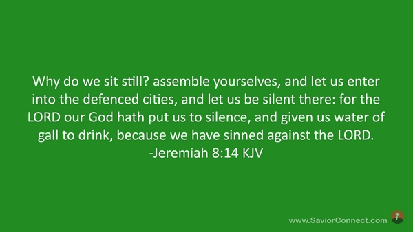Why do we sit still? assemble yourselves, and let us enter into the defenced cities, and let us be silent there: for the LORD our God hath put us to silence, and given us water of gall to drink, because we have sinned against the LORD. -Jeremiah 8:14 KJV