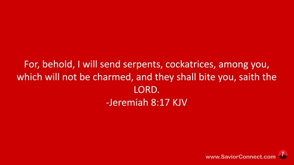 For, behold, I will send serpents, cockatrices, among you, which will not be charmed, and they shall bite you, saith the LORD. -Jeremiah 8:17 KJV