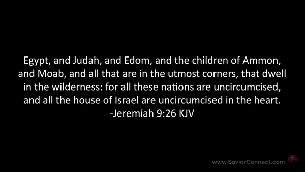 Egypt, and Judah, and Edom, and the children of Ammon, and Moab, and all that are in the utmost corners, that dwell in the wilderness: for all these nations are uncircumcised, and all the house of Israel are uncircumcised in the heart. -Jeremiah 9:26 KJV