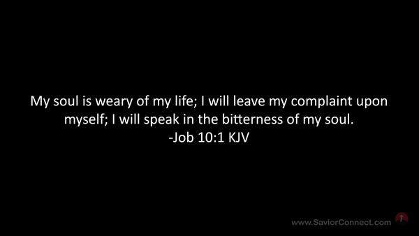 My soul is weary of my life; I will leave my complaint upon myself; I will speak in the bitterness of my soul. -Job 10:1 KJV