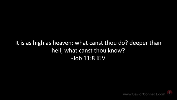 It is as high as heaven; what canst thou do? deeper than hell; what canst thou know? -Job 11:8 KJV