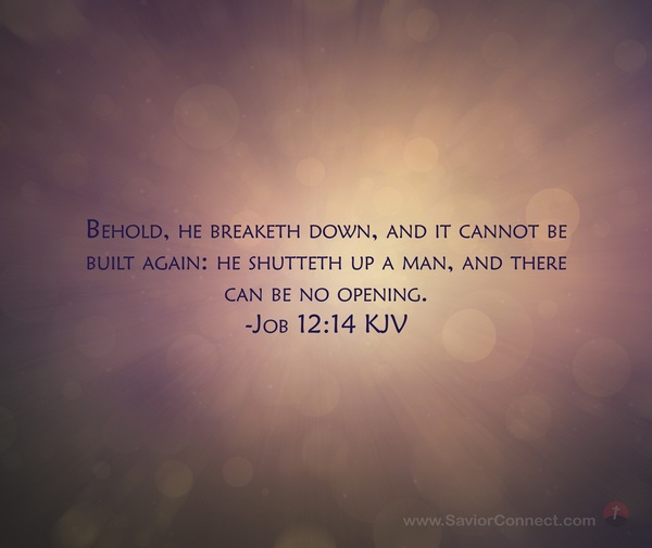 Behold, he breaketh down, and it cannot be built again: he shutteth up a man, and there can be no opening. -Job 12:14 KJV