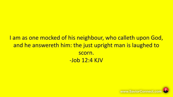 I am as one mocked of his neighbour, who calleth upon God, and he answereth him: the just upright man is laughed to scorn. -Job 12:4 KJV