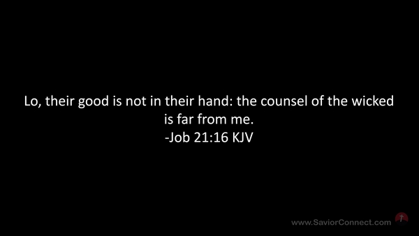 Lo, their good is not in their hand: the counsel of the wicked is far from me. -Job 21:16 KJV