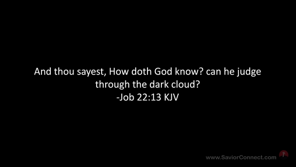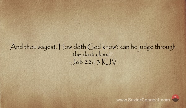 And thou sayest, How doth God know? can he judge through the dark cloud? -Job 22:13 KJV