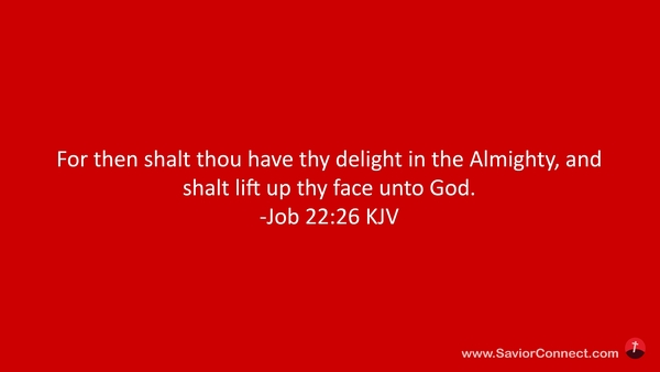 For then shalt thou have thy delight in the Almighty, and shalt lift up thy face unto God. -Job 22:26 KJV