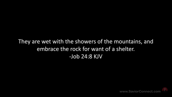 They are wet with the showers of the mountains, and embrace the rock for want of a shelter. -Job 24:8 KJV