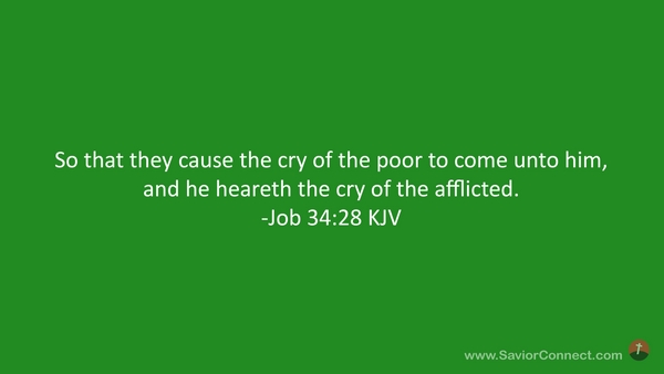 So that they cause the cry of the poor to come unto him, and he heareth the cry of the afflicted. -Job 34:28 KJV