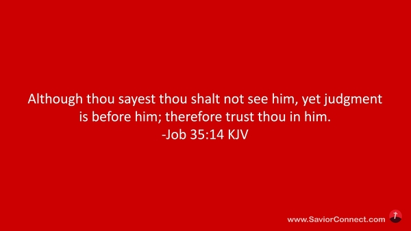 Although thou sayest thou shalt not see him, yet judgment is before him; therefore trust thou in him. -Job 35:14 KJV