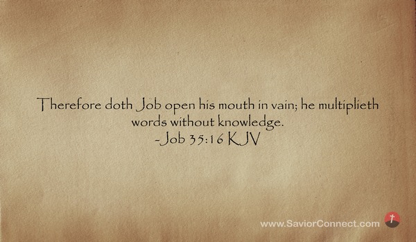 Therefore doth Job open his mouth in vain; he multiplieth words without knowledge. -Job 35:16 KJV