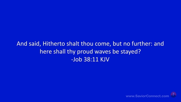 And said, Hitherto shalt thou come, but no further: and here shall thy proud waves be stayed? -Job 38:11 KJV
