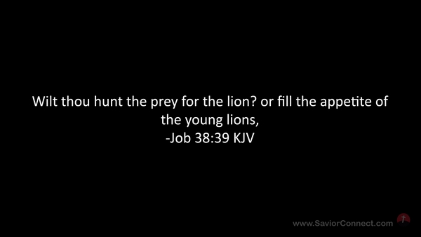 Wilt thou hunt the prey for the lion? or fill the appetite of the young lions, -Job 38:39 KJV