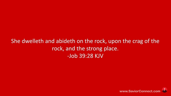 She dwelleth and abideth on the rock, upon the crag of the rock, and the strong place. -Job 39:28 KJV
