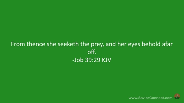 From thence she seeketh the prey, and her eyes behold afar off. -Job 39:29 KJV