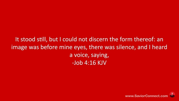 It stood still, but I could not discern the form thereof: an image was before mine eyes, there was silence, and I heard a voice, saying, -Job 4:16 KJV
