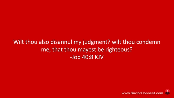 Wilt thou also disannul my judgment? wilt thou condemn me, that thou mayest be righteous? -Job 40:8 KJV