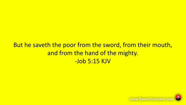But he saveth the poor from the sword, from their mouth, and from the hand of the mighty. -Job 5:15 KJV